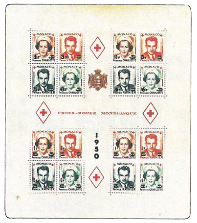 Plus recherché encore que les fameux blocs du mariage princier : ces épreuves de luxe sur bristol, non dentelées. Elles figuraient, en particulier, dans des recueils spéciaux à couverture blanche offerts à des personnalités.